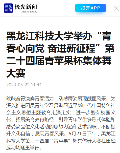 22/ 2023-05极光新闻:米兰官网平台举办“青春心向党 奋进新征程”第二十四届青苹果杯集体舞大赛