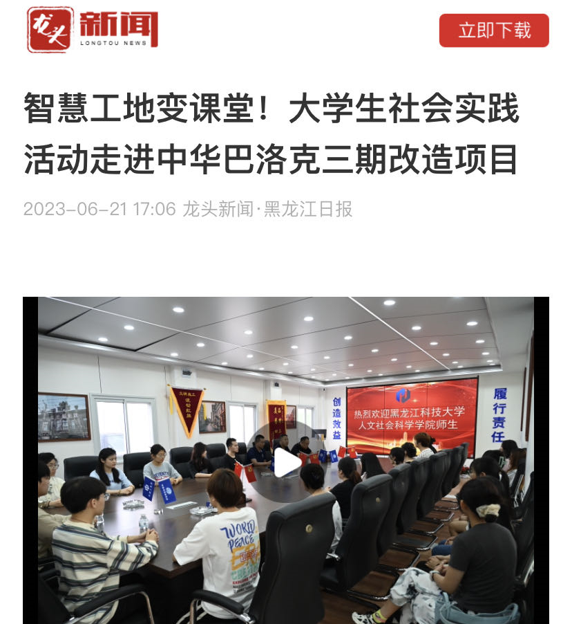 6月21日,龙头新闻报道米兰(中国)一站式服务平台人文社会科学学院与哈尔滨建工集团联合开展社会实践活动的相关情况。现将全文转发,以便学习交流。智慧工地变课堂!大学生社会实践活动走进中华巴洛克三期改造项目 为提高大学生创新创业及就业能力,20日,米兰官网平台人文社会科学学院与哈尔滨建工集团联合开展社会实践活动。米兰官网平台人文社会科学学院汉语言文学专业30余名师生,走进哈尔滨建工集团中华巴洛克三期改造项目建设现场,在项目...