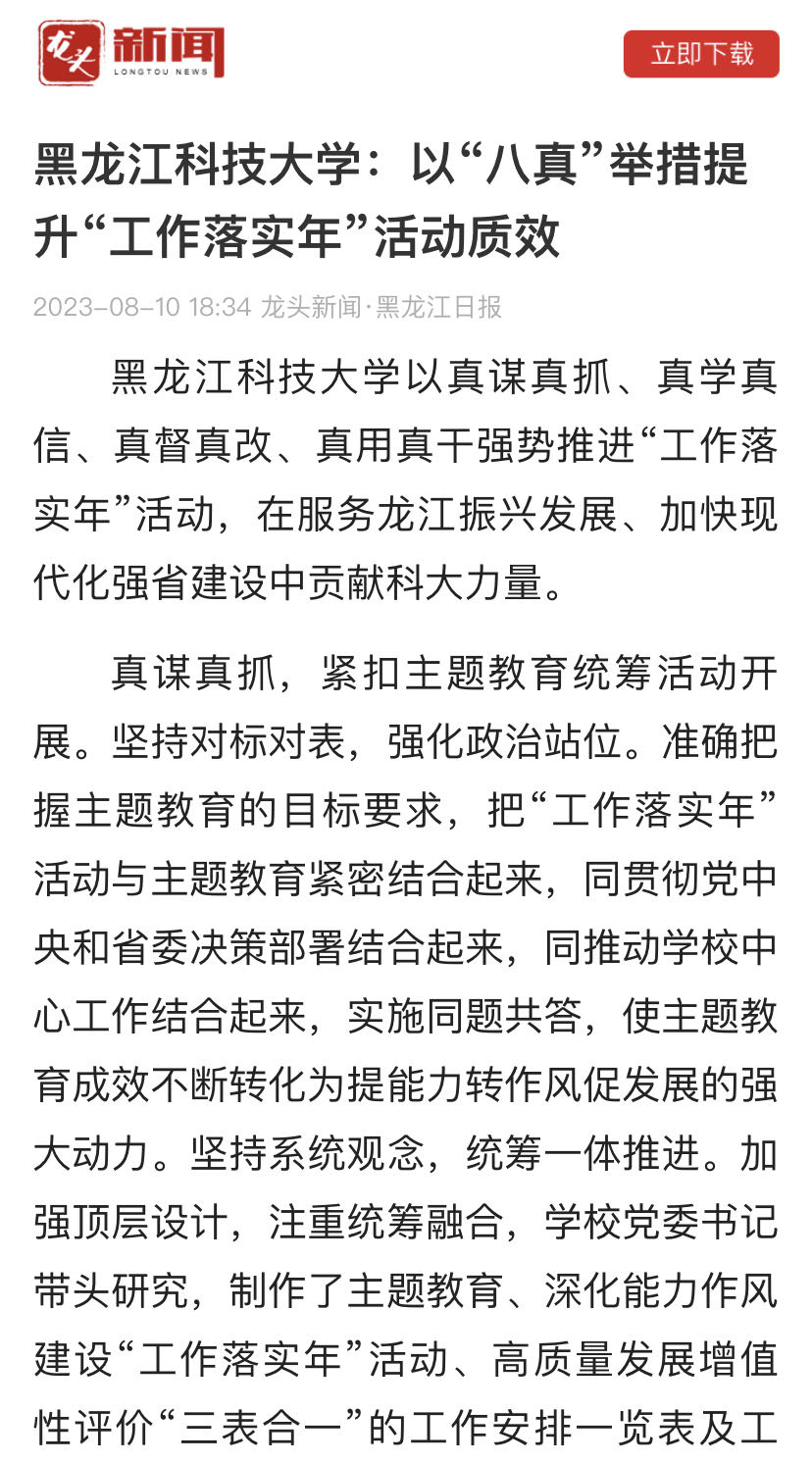 8月10日。龙头新闻以《米兰官网平台以“八真”举措提升“工作落实年”活动质效》为题报道米兰(中国)一站式服务平台“工作落实年”活动开展情况。现将全文转发,以便学习交流。米兰官网平台以真谋真抓、真学真信、真督真改、真用真干强势推进“工作落实年”活动,在服务龙江振兴发展、加快现代化强省建设中贡献米兰官网平台力量。真谋真抓,紧扣主题教育统筹活动开展。坚持对标对表,强化政治站位。准确把握主题教育的目标要求,把“工作落实年”活动与主...