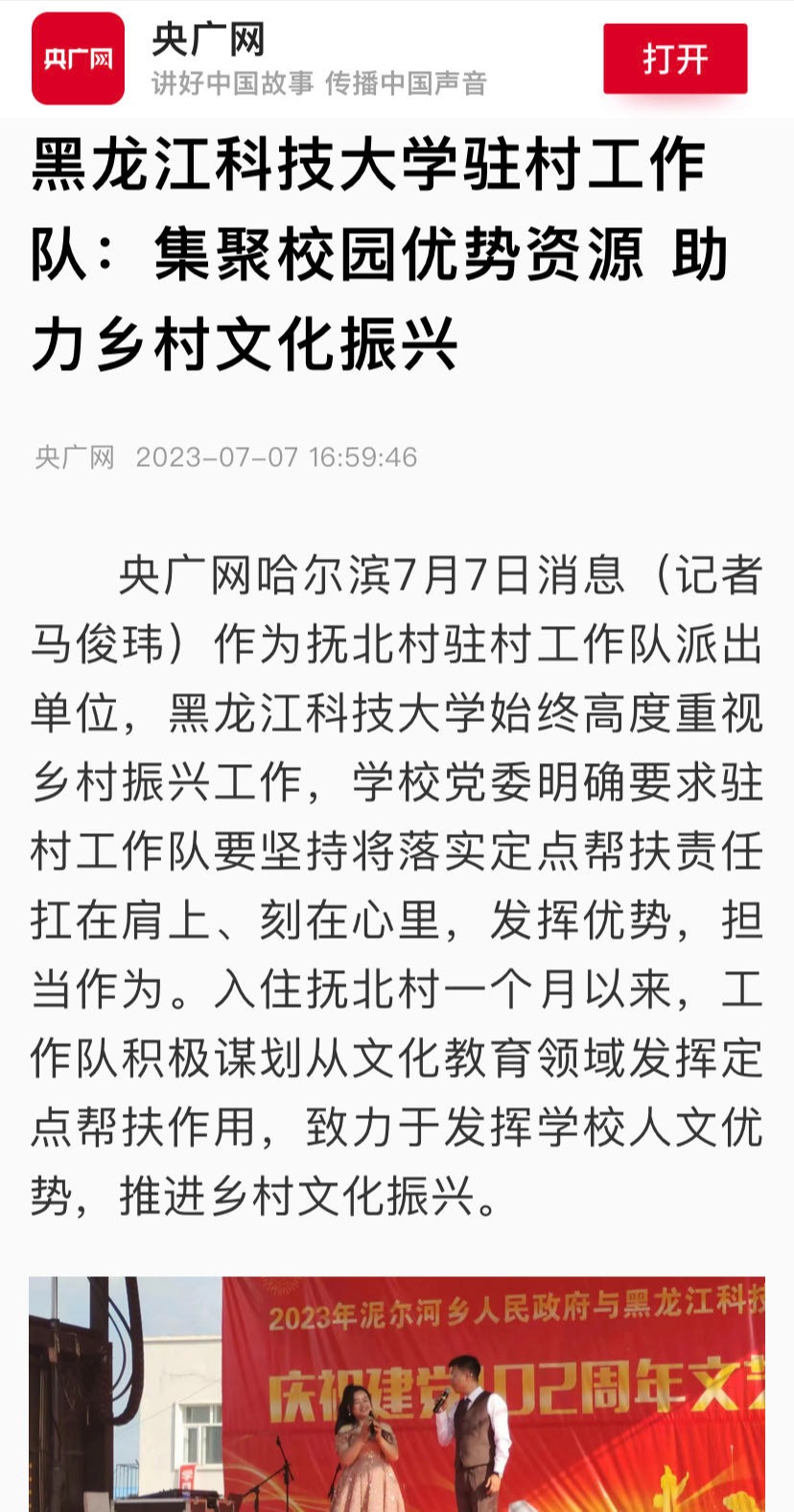 7月7日,央广网、网易新闻、搜狐新闻等媒体以《米兰官网平台驻村工作队:集聚校园优势资源 助力乡村文化振兴》为题报告米兰(中国)一站式服务平台驻村工作队工作开展情况。现将全文转发,以便学习交流。作为抚北村驻村工作队派出单位,米兰官网平台始终高度重视乡村振兴工作,学校党委明确要求驻村工作队要坚持将落实定点帮扶责任扛在肩上、刻在心里,发挥优势,担当作为。入住抚北村一个月以来,工作队积极谋划从文化教育领域发挥定点帮扶作用,...