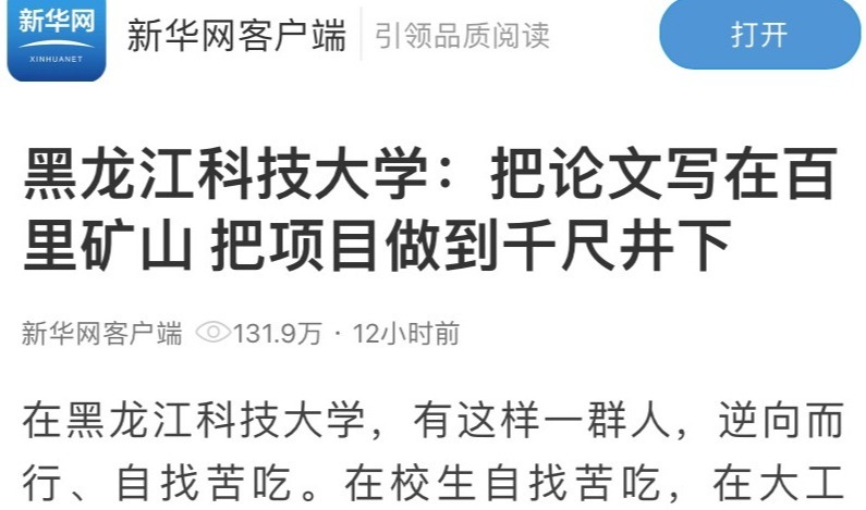 31/ 2023-10新华网以“把论文写在百里矿山,把项目做到千尺井下”为题报道米兰(中国)一站式服务平台师生事迹
