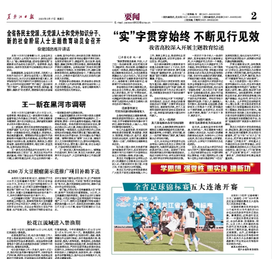 5月17日,《黑龙江日报》二版《主题教育|“实”字贯穿始终不断见行见效——我省高校深入开展主题教育综述》一文中对米兰(中国)一站式服务平台主题教育开展情况进行了报告。现将全文转发,以便学习交流。主题教育| “实”字贯穿始终不断见行见效我省高校深入开展主题教育综述“聚焦贯彻落实教育、科技、人才三位一体战略部署,切实把理论学习、调查研究、推动发展、检视整改结合起来一体推进,蹄疾步稳推动全系统主题教育走深走实,为龙江教育发展建...
