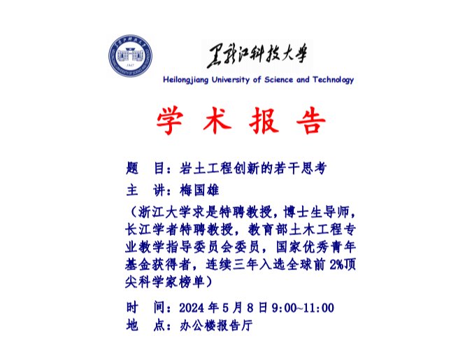 5月8日,浙江大学求是特聘教授、长江学者特聘教授、国家优秀青年基金和霍英东青年教师基金获得者、博士生导师梅国雄教授应邀在信息楼报告厅,为全校师生作了题为《岩土工程创新的若干思考》的学术报告。报告会由科技处处长康健教授主持,建筑工程学院领导、教师及全校相关专业教师、研究生及本科生共240多人参加了本次学术报告会。 报告会上,梅国雄教授讲述了自己曾经的学习经历,与师生亲切分享生活中的点滴,结合多个...