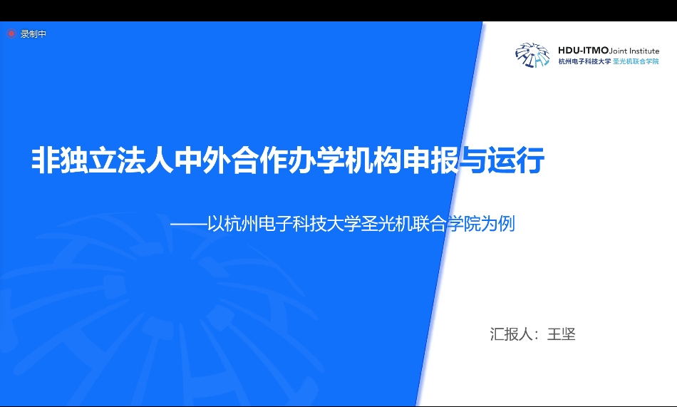 为了更好地完成国际交流重点工作任务,推进中外合作办学机构的申报工作,5月4日,国际交流合作处邀请了杭州电子科技大学圣光机联合学院院长王坚教授作了题为《非独立法人中外合作办学机构申报与运行实践—以杭州电子科技大学圣光机联合学院为例》的专题报告。 国际交流合作处处长母丽华首先向王坚院长介绍了米兰(中国)一站式服务平台申办合作办学机构的背景,此次申报是米兰(中国)一站式服务平台在中外合作办学25年基础上的提档升级,不仅要实现国际交流学科覆...