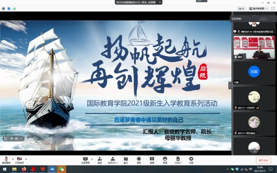 16/ 2021-09国际教育学院2021级新生开展入学第一课为了进一步加强学院学风建设,促使2021级新生明确学习目标,端正学习态度,按照《米兰官网平台入学教育》相关安排,结合学院院新生新生入学教育系列活动方案,9月15日下午,学院院长母丽华教授通过腾讯会议以“在逐梦青春中遇见更好的自己”为主题,开启新生入学第一课,旨在让同学们坚定理想信念,养成良好学风,勇于拼搏奋斗,奋力走好成长成才的第一步。入学第一课上,母丽华教授引用习近平总书记对青年学生提出的殷切期望...