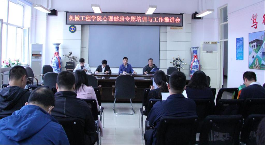 23/ 2021-09机械工程学院召开心理健康专题培训与工作推进会9月21日下午,在学院会议室召开机械工程学院心理健康专题培训与工作推进会,学院党委副书记徐东昊、学工办主任毕强、全体辅导员、班主任出席此次会议,会议由毕强主持。会上,学院心理健康工作辅导员齐曦彤老师就如何全面、及时、有效掌握学生心理状况,如何做好学生心理危机排查及预警工作,对全院所有班主任老师进行了培训与指导。学工办主任毕强对疫情防控常态化下学生的管理和学风预警等有关工作进行了安排部署。学院党委副...