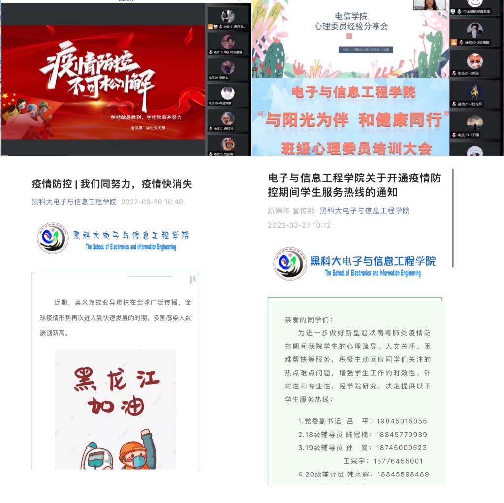 07/ 2022-04电子与信息工程学院做好“加减乘除法” 筑牢学生心理健康防线疫情以来,电子与信息工程学院充分发挥”四位一体”心理健康教育工作体系的作用,坚持做好“加减乘除法”,不断聚心、强心、暖心、稳心,持续筑牢学生心理防线。 一、思想教育做“加法”,共克时艰 “聚生心”始终坚持把“坚定学生战疫信心”作为头等大事。学院成立疫情防控工作专班,迅速反应、快速行动,分别组织召开学生工作专项会和班主任工作会部署学生疫情防控工作,下发《关于进一步做好当前学生工作的通知》,要求全体辅...