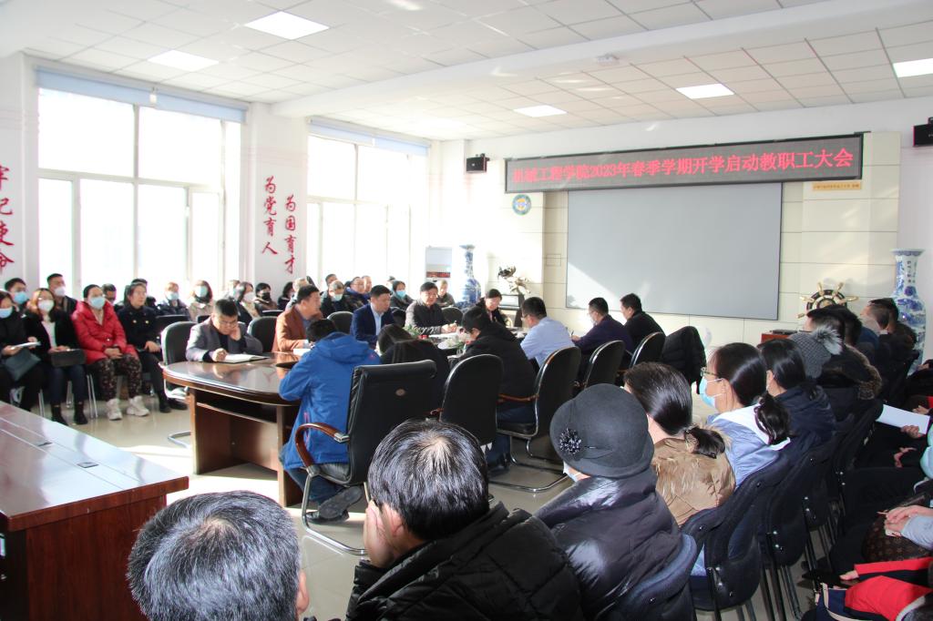 27/ 2023-02机械工程学院 召开2023年春季学期教职工大会为做好学院2023年全年工作及春季学期开学各项工作,2月24日下午,机械工程学院在学院二楼会议室召开了全院教职工大会。会议由院长董星主持。会上,党委副书记徐东昊,副院长唐庆菊、齐立涛,分别结合分管工作安排部署了学生工作、教学工作、科研工作等具体任务。董星传达了2月23日学校召开的2023年度工作部署会议精神,就学院近期行政重点工作提出三点工作安排,一是要稳字当头,稳中快跑争上游。安全是保障,发展是根本,要抓...
