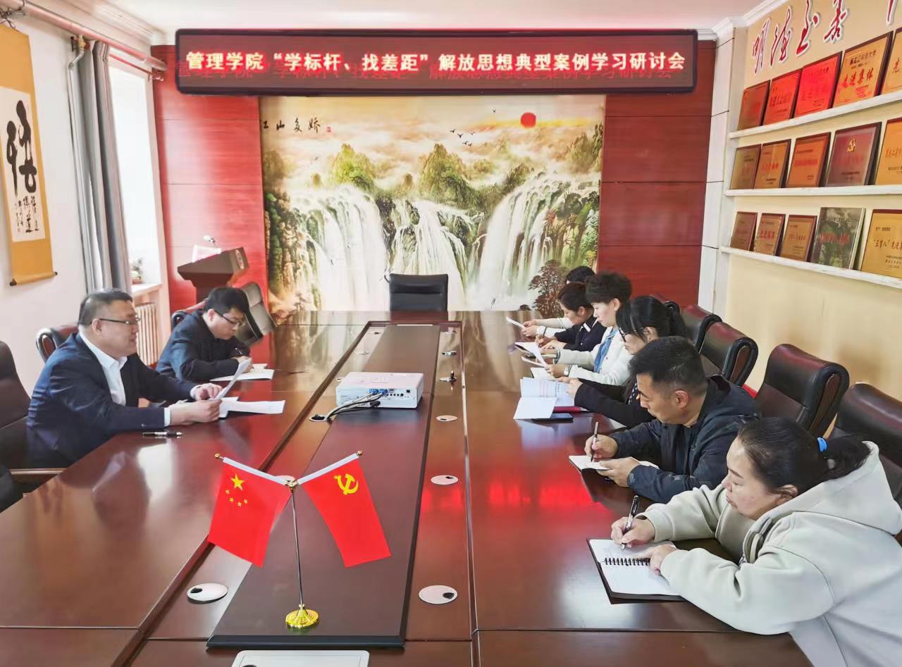 19/ 2023-05管理学院“五比五看”开展案例学习研讨为深入开展学习贯彻习近平新时代中国特色社会主义思想主题教育,持续推进能力作风建设“工作落实年”活动,近日,管理学院党委在学院二楼会议室举行了“学标杆、找差距”解放思想典型案例学习研讨会。学院党政班子成员和办公室负责人参加了会议。会议由学院党委书记何景洋主持。会上,班子成员结合典型案例《解放思想案例——中国一重启示录》学习情况和工作实际,进行了交流研讨,进一步解放了思想,凝聚了发展共识。会议要求...