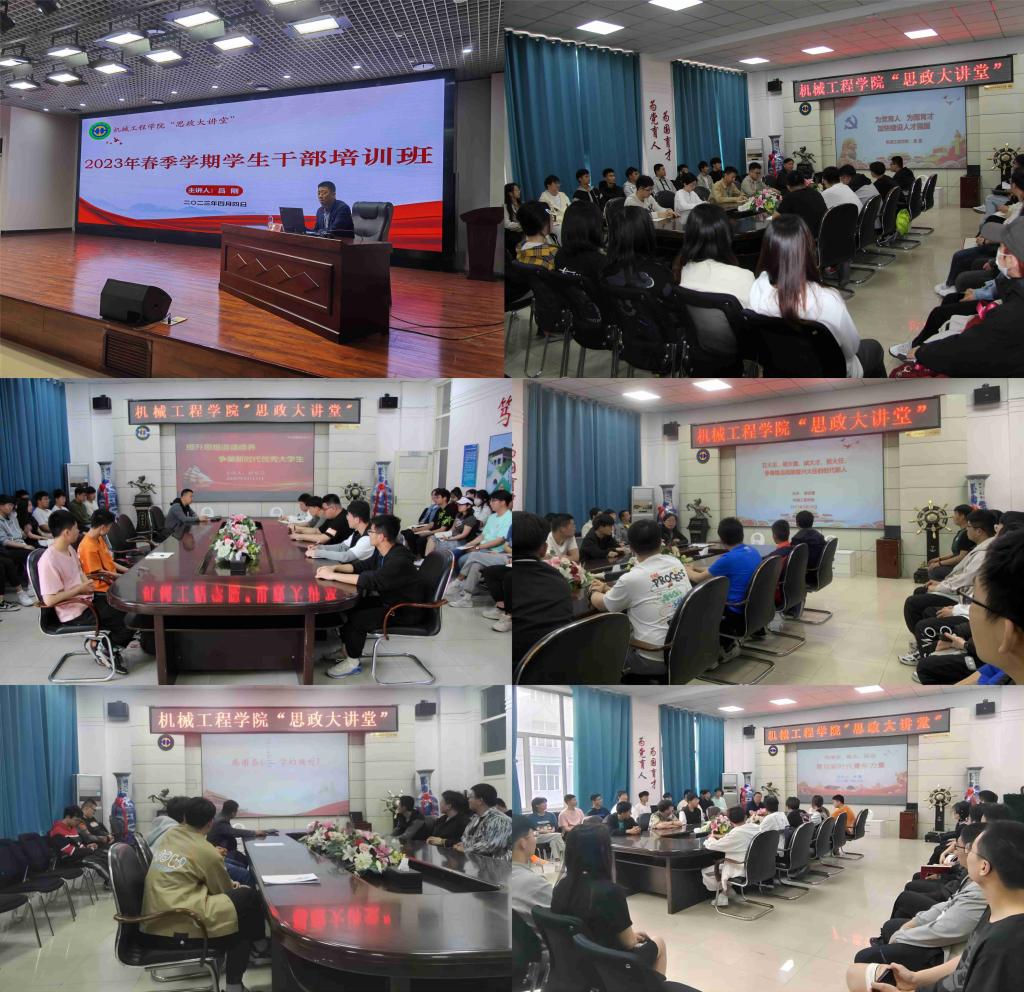 19/ 2023-05机械工程学院开展“思政大讲堂”活动为深入开展学习贯彻习近平新时代中国特色社会主义思想主题教育,扎实推进理论学习全覆盖,构建“大思政”教育平台,2023年4月-5月,机械工程学院开展了“思政大讲堂”活动,全体处级领导干部参与了授课任务。党委书记吕刚率先以《明确角色定位,明确初心使命,明确素质要求,努力做新时代优秀学生干部》为题开讲,激发了学生干部的思考,强化了责任和担当意识,明确了努力方向和工作目标。院长董星以《为党育人,为国育才,加快...