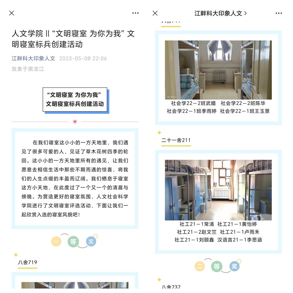 19/ 2023-05人文社会科学学院开展“正寝风 带班风 促学风”系列活动为落实“不忘初心砥砺深耕学思践悟守正担当”主题教育活动要求,落实立德树人根本任务,进一步培育优良学风,积极营造良好的育人环境,人文学院开展“正寝风带班风促学风”系列活动。严肃考风考纪,培养诚信品质。召开“严肃考风考纪,树立优良学风”主题班会教育活动。强调考风考纪的严肃性和重要性,明确严肃考风考纪的目的与意义,增强学生的诚信意识,端正学生的学习态度,有效提升学生自我教育和自我管理能力,营造文明、...