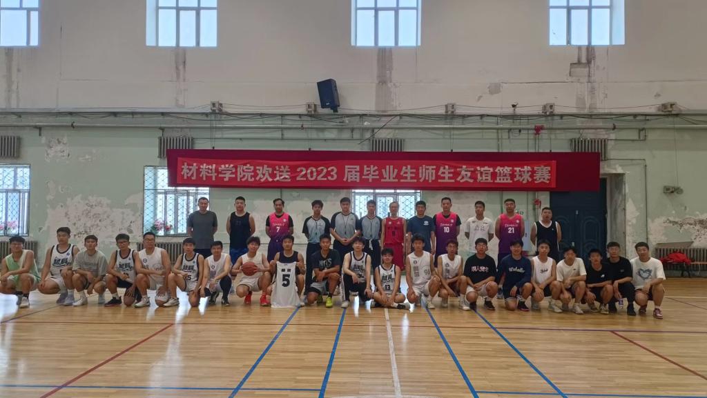 21/ 2023-06“曲终人未散,相约再重逢”——材料学院举办欢送2023届毕业生师生篮球赛为表达对毕业生的美好祝福,增进老师与毕业生的情谊。6月19日,材料科学与工程学院在体育馆内举行欢送毕业生师生篮球赛,以一场酣畅淋漓的比赛欢送2023届毕业生踏上人生新征程。比赛现场,双方队员迅速进入状态,尽情的展示自己的才能。运球、互传、防守、进攻、抢断、灌篮......每一个漂亮的防守,精彩的投篮,都吸引着在场观众的目光。这一场场精彩的对决让人心潮澎湃,篮球的刷网声,裁判的吹哨声,观众的呼喊声,在耳边久久...