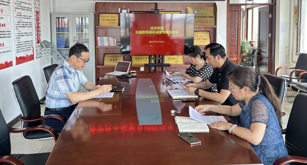 27/ 2023-06经济学院召开主题教育调研成果专题研讨会6月25日,经济学院在朝阳楼0502党员之家召开主题教育调研成果专题研讨会。学院班子成员参加会议,会议由邬丽群主持。研讨交流过程中,班子成员结合分管工作,聚焦学生成长成才、教育教学改革、人才培养、人才需求、服务龙江经济发展等难点痛点,分别以“新发展格局下我省资源型城市转型发展、经济类专业本科课堂教学改革满意度调查、专硕人才需求调研报告、为何出现青出于蓝而剩于篮的困境”等四个调研课题作交流发言。前期调研...
