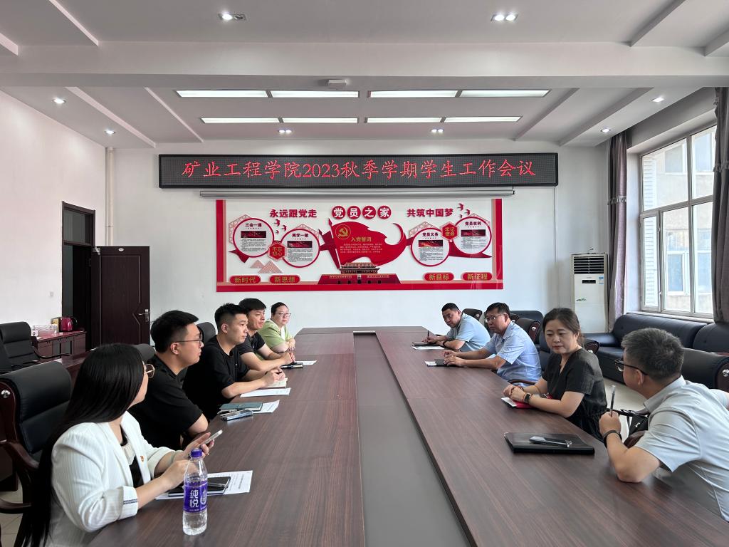 28/ 2023-08矿业工程学院开展首周教育工作星霜荏苒,居诸不息。矿业工程学院迎来新一轮的开学季。促责任意识,守立德树人信念。党委副书记李强就年级工作调整、学生日常管理、学风建设、党建工作、团员工作、教育工作、心理健康教育工作、奖助贷工作、2023级迎新工作以及毕业生就业工作等进行了详细的分配和部署。他希望全体学生干部牢记习近平总书记关于以学铸魂、以学增智、以学正风、以学促干的具体要求,提升工作能力,做好灵魂导师。奋斗励志行,稳健启航新征程。...