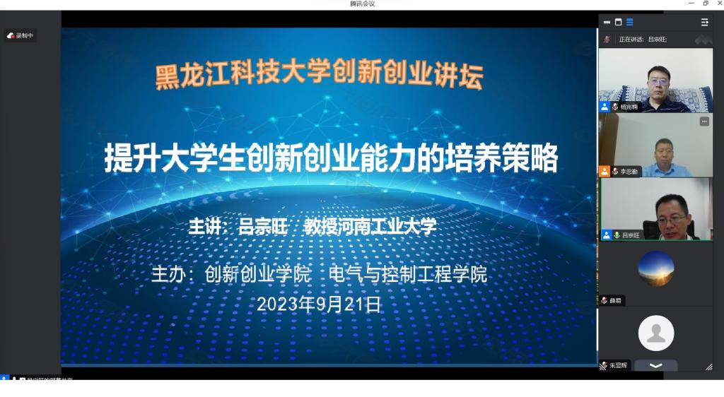 25/ 2023-09创新创业学院与电气与控制工程学院联合举办创新创业讲坛为了提升米兰(中国)一站式服务平台大学生创新创业能力,提高教师指导大学生创新创业项目的工作成效,9月21日,创新创业学院与电气与控制工程学院共同邀请河南工业大学吕宗旺教授通过线上的形式做了关于“提升大学生创新创业能力的培养策略”的交流报告。报告从创新人才培养面临的问题出发,提出了从“人、机、物、法”四个方面破解问题的方法,并通过亲身实践的详实案例和做法为大家展示了如何培养创新型人才的路径,为米兰(中国)一站式服务平台教师提供了良好的借鉴和启...