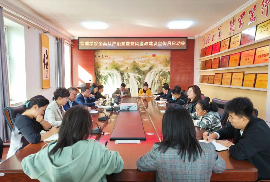 29/ 2023-09管理学院召开全面从严治党暨党风廉政建设宣传教育月启动会为全面学习宣传贯彻党的二十大精神,推进落实新时代廉洁文化建设,9月27日下午,管理学院召开了全面从严治党暨党风廉政建设宣传教育月启动会,学院党委班子成员和各党支部书记参加会议,会议由学院党委书记何景洋主持。会上,党委副书记徐海英宣读了《管理学院2023年全面从严治党暨党风廉政建设宣传教育月活动实施方案》,并就学院扎实开展宣传教育月活动作安排部署。党委书记何景洋在总结会议时强调:一要聚焦纪律自觉,各党支...