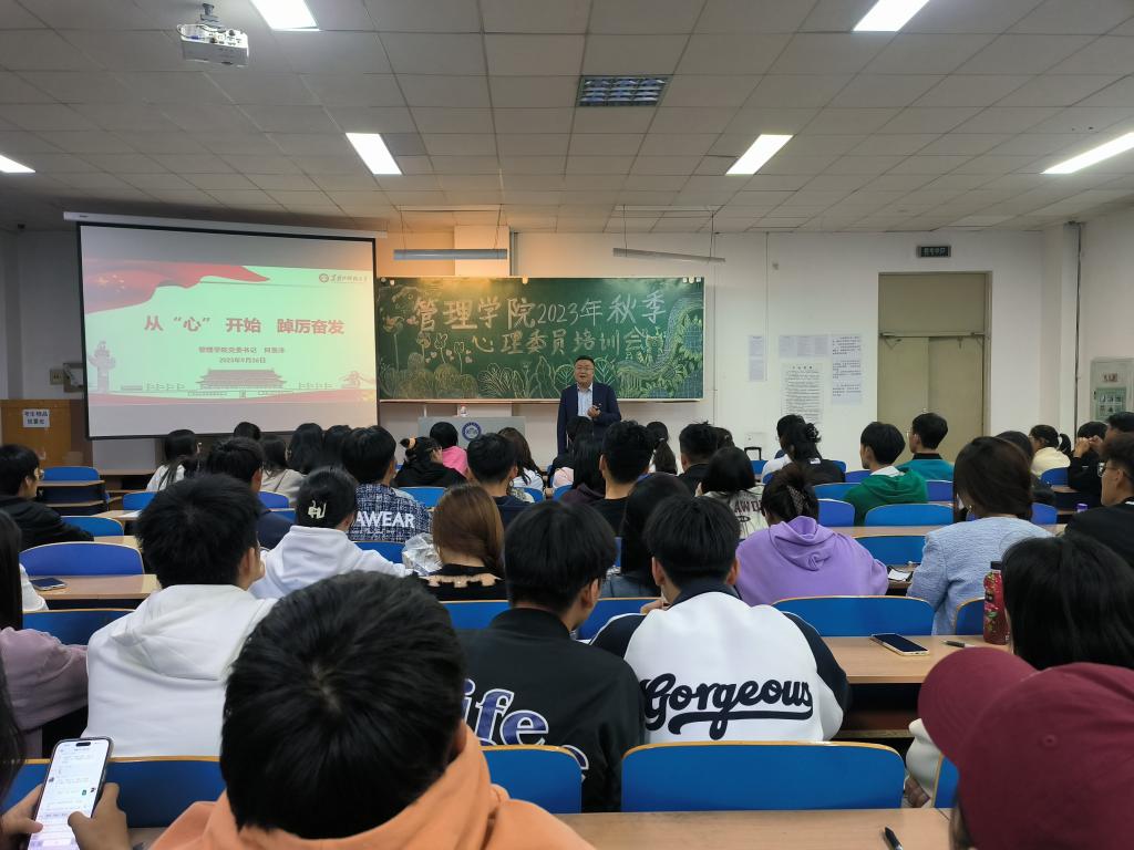 09/ 2023-10从“心”开始,踔厉奋发 管理学院开展2023年秋季心理委员培训会为提高学院心理健康教育工作质量,充分发挥心理委员在朋辈心理辅导的优势和作用,积极响应《米兰官网平台第三届“久爱我·Three-Double”9·25大学生心理健康教育活动方案》,管理学院于近期在主楼WN0303教室开展了2023年秋季心理委员培训会。本次培训会由管理学院党委书记何景洋主讲,学院全体心理委员参加了本次培训会。何景洋巧妙结合“二十四节气”,用通俗易懂的语言和生动形象的范例,点出“从“心”开始,踔厉奋发”的培...
