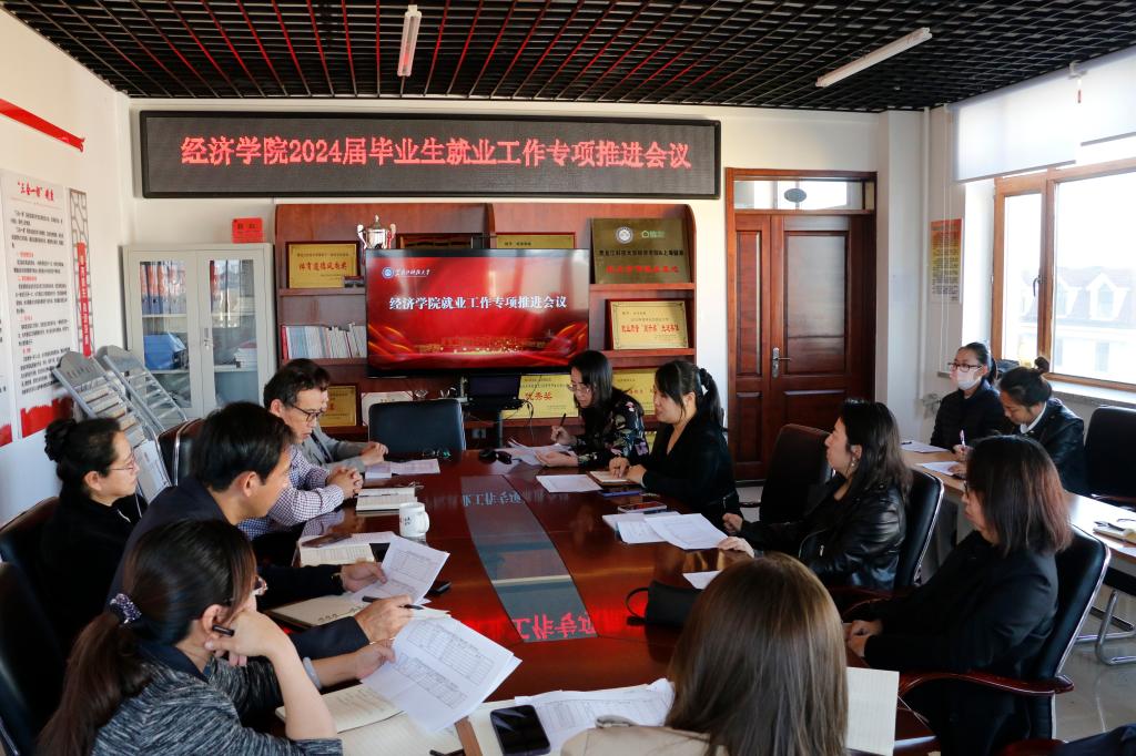 12/ 2023-10经济学院召开毕业生就业工作专项推进会为了做好2024届毕业生就业工作,促进全员齐抓共管,形成合力,经济学院于10月11日下午召开了2024届毕业生就业工作专项推进会。学院党政领导、教研室主任、学工办全体人员、全体2020级班主任参加会议。会议由学院党委副书记邬丽群主持。会上,就业辅导员王东旭从领导包保、专业、班级等方面通报了学院2024届毕业生截至目前的就业情况。学院党委副书记邬丽群对学院2023届毕业生就业情况进行总结,并提出2024届毕业生就业工作面临...