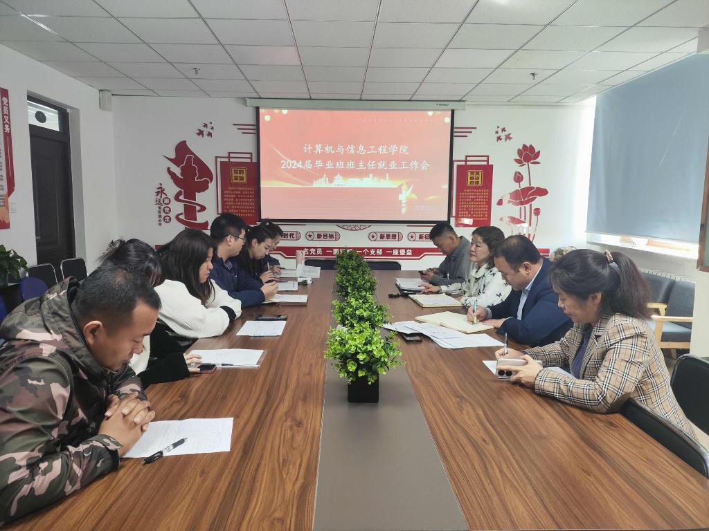 18/ 2023-10计算机学院召开2024届毕业班班主任就业工作推进会为扎实做好2024届毕业生就业工作,助推就业工作阶段性目标顺利实现,10月17日,计算机学院召开2024届毕业班班主任就业工作推进会,学院党委副书记张丽媛、毕业班辅导员以及毕业班班主任参加会议,会议由学院副处级辅导员韩永辉主持。会上,学院就业工作辅导员赵岩对2024届毕业生就业工作进行了阶段性总结,通报了各专业毕业生就业率以及学生参加招聘会情况;各毕业班班主任详细汇报了班级学生就业进度、逐一梳理了未就业学生的...