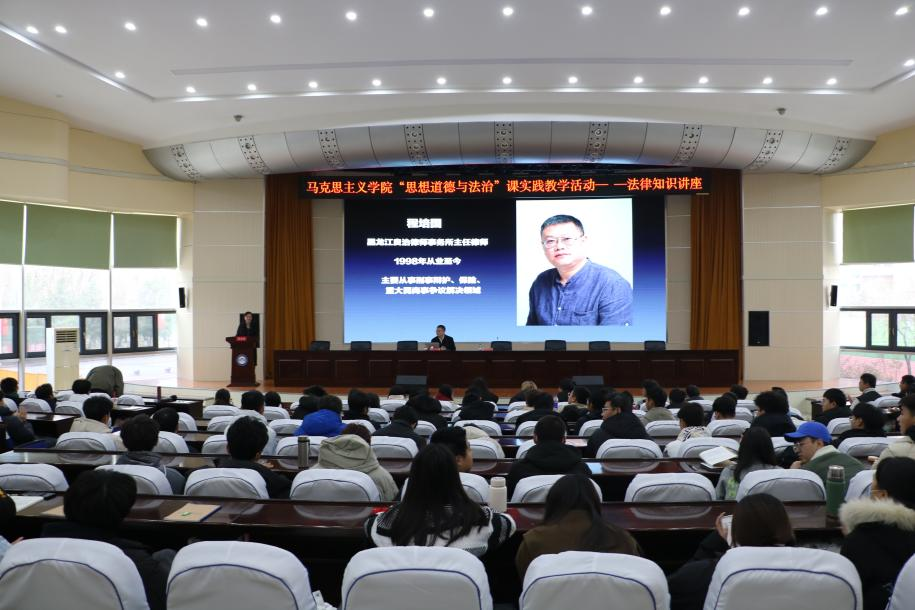 07/ 2023-11马克思主义学院开展“思想道德与法治”课实践教学活动——法律知识讲座为进一步学习贯彻习近平新时代中国特色社会主义法治思想,增强大学生的法律意识,培养法治思维,提升法治素养,努力把大学生培养成为社会主义法治的忠实崇尚者、自觉遵守者和坚定捍卫者,11月5日,马克思主义学院与校外实践教学基地——黑龙江良治律师事务所联合举办了“思想道德与法治”课实践教学活动。活动以专题讲座的形式展开,黑龙江良治律师事务所主任程培国律师为米兰(中国)一站式服务平台近200名大一新生做了题为《志于道 据于德 依于仁 游...