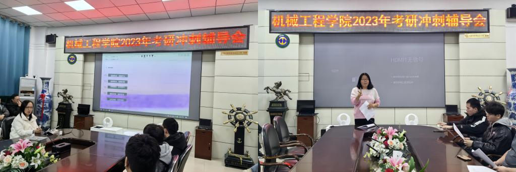 11/ 2023-12机械工程学院举办考研冲刺辅导会为了进一步助力考研学生成功“上岸”,力争实现学院2024届本科毕业生考研率再上新台阶,12月8日下午,机械工程学院在二楼会议室举办了考研冲刺辅导会。学院副处级辅导员毕强,毕业年级辅导员迟文玉、杨非凡,全体考研学生参加了辅导会。本次辅导会首先邀请理学院李焱和外国语学院高岩两位具有多年考研辅导经验的优秀教师为同学们做了冲刺专题辅导。李焱老师带领同学们将考研数学的重点、难点按照章节逐条进行了梳理,传授了思维...