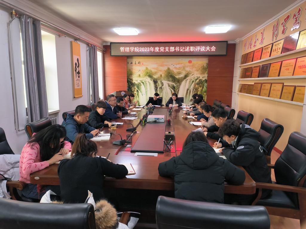 27/ 2023-12管理学院召开2023年度党支部书记述职评议大会为深入贯彻落实习近平新时代中国特色社会主义思想和党的二十大精神,提升基层党建工作质量、推动全面从严治党向基层延伸,按照学校关于《2023年度基层党组织书记抓基层党建工作职评议考核工作方案》的通知要求,12月25日,管理学院党委在学院三楼会议室召开2023年度党支部书记述职评议大会。学院党委班子成员、教师党支部及学生党支部书记共23人参加了会议。会议由院党委副书记徐海英主持。 述职评议会上,18位支部书记根据支部...