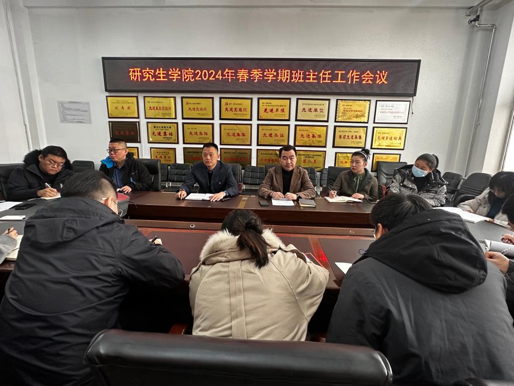 28/ 2024-02研究生学院召开2024年春季学期班主任工作会议为加强研究生班主任队伍建设,提升班级管理水平,推进新学期学生工作有力开展,研究生学院于2月27日在科高1010会议室召开2024年春季学期班主任工作会议。学院党委副书记王伟强出席了会议,全体研究生班主任参加了会议。会议由王伟强主持。研究生学院副处级辅导员郝鑫传达了学院本学期学生工作的指导思想和工作目标:重点围绕“党建引领、基础提升、跳起摸高、争先创优”的工作主线,以“打造样板党支部、实现高水平就业、推进高...