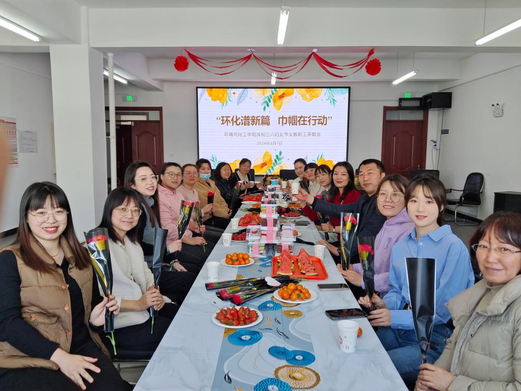 08/ 2024-03环境与化工学院开展 “环化谱新篇 巾帼在行动”主题庆祝三八妇女节茶歇活动芬芳三月,巾帼如歌。环化学院为庆祝“三八”妇女节,提升全院女教师的幸福感、归属感,激励女教师在新时代、新征程上踔厉奋发、勇毅前行。于3月7日上午9:30分在学院报告厅举办“环化谱新篇 巾帼在行动”为主题的女教职工茶歇会,学院党委书记苗雨,党委副书记、工会主席樊晓东及全体女教职工参加了活动。活动现场,学院为所有女教职工准备了丰盛的糕点、水果、咖啡,让大家在工作之余放松心情,享受美食和交流互动的愉悦。学院...