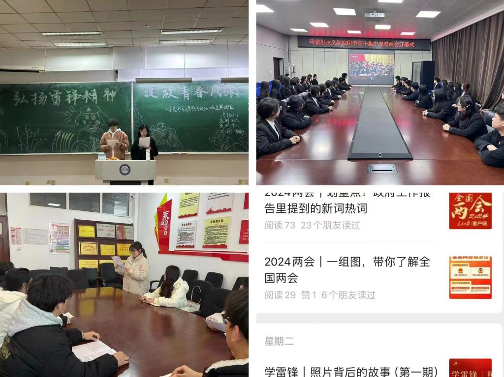 11/ 2024-03马克思主义学院开展“弘扬雷锋精神 绽放青春风采”主题团日系列活动结合《关于在全校范围内开展“弘扬雷锋精神 绽放青春风采”主题团日活动的通知》文件要求,为进一步弘扬“奉献、友爱、互助、进步”的奉献精神,引领团员牢固树立“人人崇尚雷锋,人人争做雷锋”的思想意识,在社会实践和志愿服务中积极奉献,马克思主义学院开展“弘扬雷锋精神 绽放青春风采”主题团日系列活动。精神永驻闪光芒伟大形象育后生。全国两会期间,积极组织功能性团支部和团学骨干观看两会直播,聆听政府工作报告,...