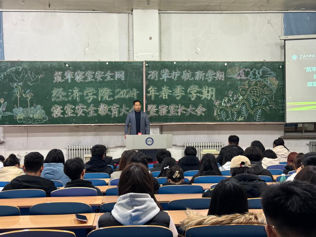 21/ 2024-03经济学院召开2024年春季学期寝室安全教育大会为深入贯彻落实习近平总书记关于校园安全工作重要指示精神,进一步提高学生消防安全意识,加强学生社区文明寝室标兵建设,切实提升心理健康朋辈辅导能力,营造安全稳定的校园环境,经济学院3月19日召开“筑牢寝室安全网 朋辈护航新学期”经济学院2024年春季学期寝室安全教育大会。学院党委副书记邬丽群、全体辅导员、主要学生骨干、全体寝室长参加会议。会议由学院分团委书记姜胜馨主持。会上,全体辅导员结合分管工作,针对学...