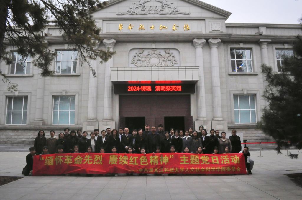 28/ 2024-03人文学院开展“缅怀革命先烈 赓续红色精神”主题党日活动为深切缅怀革命先烈丰功伟绩,用好用活红色资源,赓续精神血脉,激发爱党爱国热情,进一步凝聚学院师生党员“奋进新征程、建功新时代”的精神动力。3月27日下午,人文学院在哈尔滨烈士陵园开展了“缅怀革命先烈 赓续红色精神”主题党日活动。活动期间,师生党员们参观了烈士墓、烈士事迹陈列馆,深切感受革命先烈们为了党和人民不惧敌人、英勇奋战的牺牲精神;举行凭吊仪式,向烈士敬献花束、鞠躬敬礼,深切缅怀革命先烈,向英...