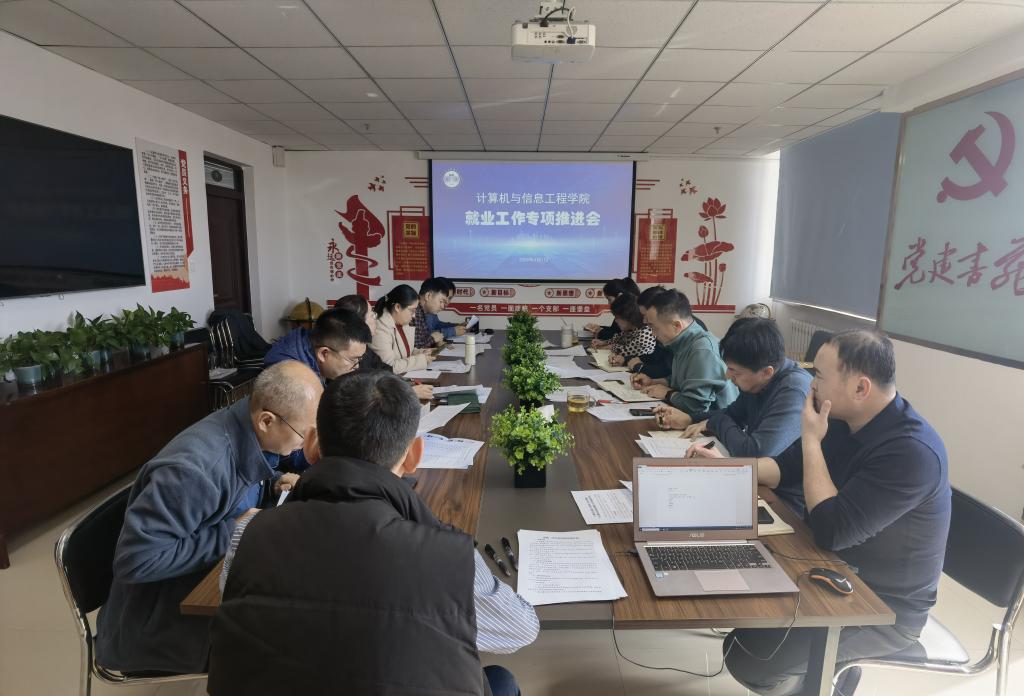 02/ 2024-04计算机学院召开2024届毕业生就业工作推进会为深入贯彻落实学校2024年就业工作推进会议精神,促进计算机学院本科毕业生高质量就业,顺利达成既定的就业目标,4月1日下午,计算机学院召开2024届本科毕业生就业工作推进会议。学院党政领导班子成员、各专业主任、就业辅导员参加会议,会议由学院党委书记彭国军主持。会上,院长赵金宪详细传达了学校2024届毕业生就业工作推进会上孟校长对当前就业工作的具体要求;党委副书记张丽媛通报了学院当前本科毕业生就业工作的整体状...