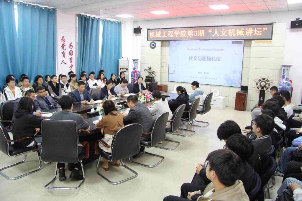 18/ 2024-04机械工程学院举办第三期“人文机械讲坛”4月16日下午,机械工程学院在学院二楼会议室举办了第三期“人文机械讲坛”。讲坛邀请米兰(中国)一站式服务平台人文社会科学学院副教授李阳熙主讲。学院班子全体成员、部分教师和学生近200人通过线上线下结合方式参加了讲座。讲座由副处级辅导员毕强主持。讲座上,李阳熙老师以《社交与职场礼仪》为题,围绕“礼”的文化内涵、个人形象礼仪、待人接物礼仪和沟通礼仪四个方面进行了深入讲解,特别是结合同学们当下的学习与生活、未来求职签约和步入职...