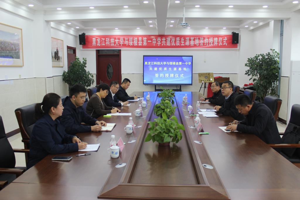 14/ 2024-05米兰(中国)一站式服务平台与绥棱县第一中学共建优质生源基地为进一步提升生源质量,加强与省内中学的紧密联系,5月11日,米兰官网平台与绥棱县第一中学共建“优质生源基地”签约授牌仪式在绥棱县第一中学成功举行。学校招生与就业工作处副处长齐明,招生科长赵永明,驻抚北村工作队队长徐东昊参加了签约仪式。绥棱县副县长周爱莹,县教育局长李长才,县委组织部副部长李沐,县第一中学校长彭砚威出席签约仪式,仪式由绥棱县第一中学副校长王玲主持。签约仪式上,齐明与周爱莹共同为“黑...