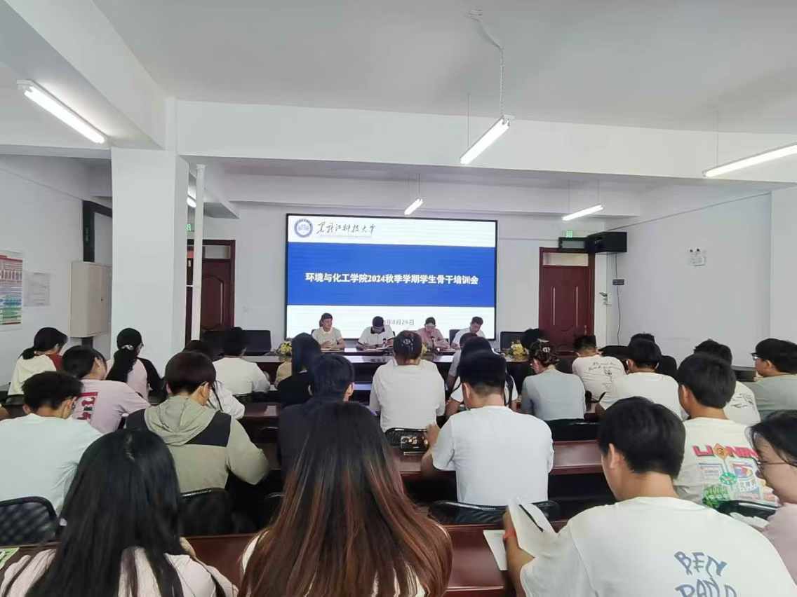 28/ 2024-08环化学院召开2024年秋季学期学生骨干培训暨开学学生工作启动会议为教育引导全体学生骨干强化政治理论学习,增强综合素质,提升工作能力,提高自我管理水平,推进学生工作高质量发展。8月26日下午,学院在环化楼4楼报告厅召开2024年秋季学期学生骨干培训暨开学学生工作启动会议。学院全体辅导员、团学组织学生骨干60余人参加了会议,会议由学工办主任陈汝楠主持。会上,团委书记朱海璐安排部署了新学期共青团相关工作,并做出新学期工作规划。学工办主任陈汝楠围绕新学期开学启动工作、学生日...