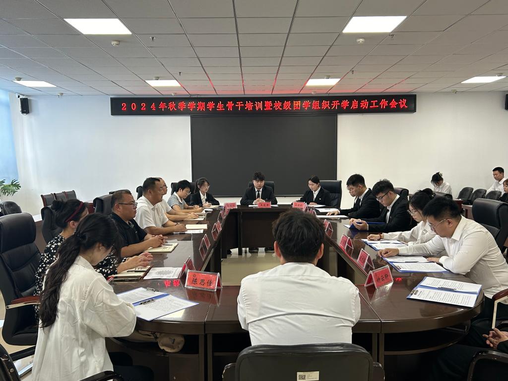 28/ 2024-08学校召开2024年秋季学期学生骨干培训暨校级团学组织开学启动工作会议8月25日下午,学校2024年秋季学期学生骨干培训暨校级团学组织开学启动工作会议在朝阳楼0317会议室召开。校团委全体工作人员、全体校级学生组织负责人参加会议,校团委书记宋玉彬主持会议。会上,各校级学生组织负责人对照组织工作职责,结合实际,逐一报告了工作,全面客观的总结了2024年上半年工作成效,认真查摆了问题和不足,提出了具体整改措施,详细报告了2024年下半年重点工作的思路和举措。听完工作报告后,宋玉彬对各校...