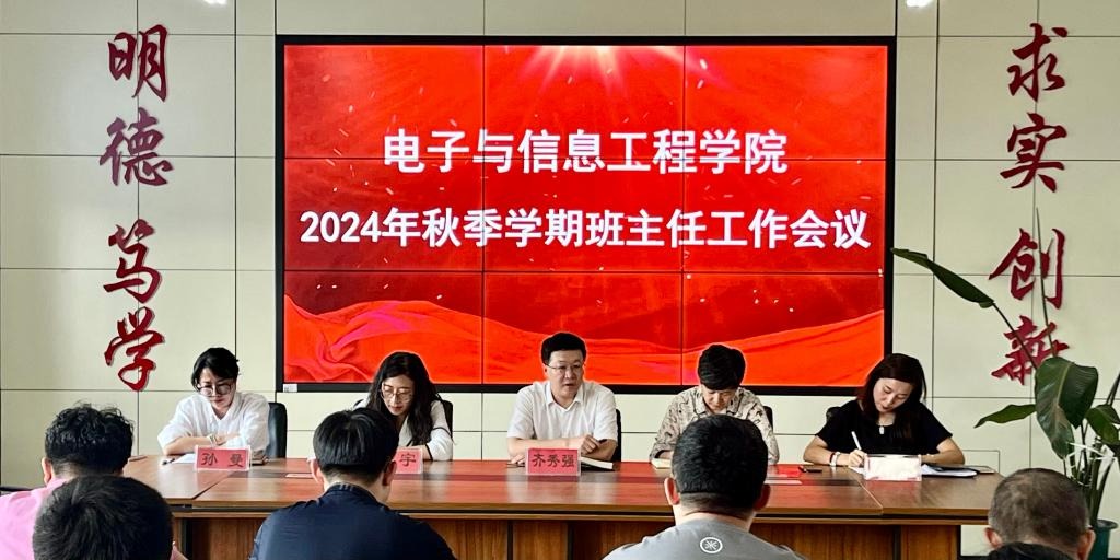 28/ 2024-08电子与信息工程学院召开2024年秋季学期班主任工作会议为进一步加强班主任队伍建设,提升班主任核心素养,充分发挥班主任在学生思想政治教育、学风建设、日常管理等方面的重要作用,引导学生德智体美劳全面发展,更好的服务学校新一轮本科教育教学审核评估工作,8月26日,电子与信息工程学院在朝阳楼0809会议室召开2024年秋季学期班主任工作会议。党委书记齐秀强、党委副书记吕平出席会议,全体辅导员、班主任参加会议,会议由学工办负责人陆冠楠主持。会上,孙曼就资助政策、家庭经...