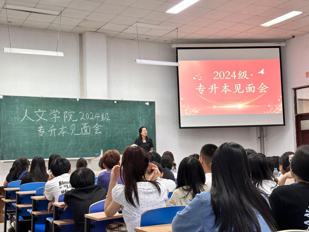 29/ 2024-08人文学院圆满完成2024级专升本迎新工作为确保2024级专升本新生迎新工作顺利进行,增强新生对学院的认同感和归属感,帮助他们尽快适应新的学习和生活环境,8月24—26日,人文学院精心策划、有序组织了融思想教育、迎新接待、游览校园等丰富多彩的迎新活动。提前谋划,齐心协力备迎新8月24日下午,通过腾讯会议召开2024级专升本报到筹备会,会议由2024级专升本辅导员张利南主持。会议强调了迎新工作的紧迫性和重要性,并对具体任务进行划分及指导,要求全体志愿者以饱满的热情和高度的责任心投入到迎新工作中,为新生提供最优质、最温暖、...