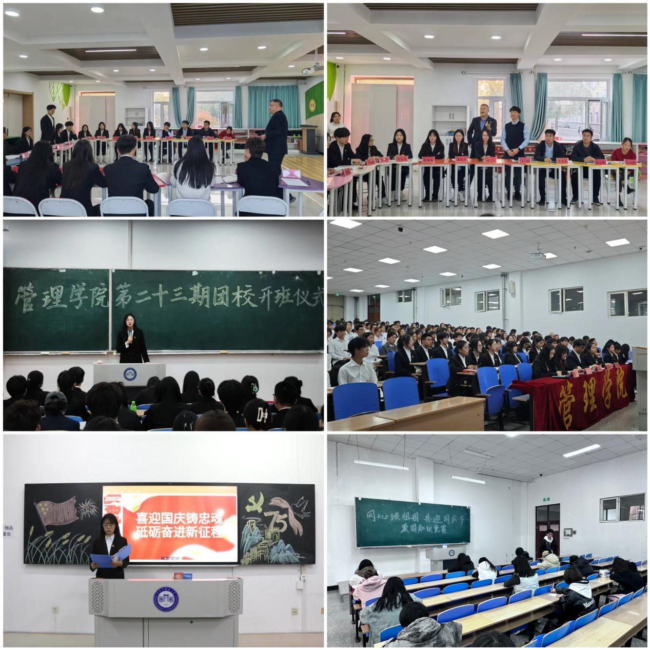 25/ 2024-10薪火相传,点亮青春之光—管理学院开展红色经典宣传月系列活动为庆祝中华人民共和国成立75周年,大力弘扬爱国奉献、团结奋进的浓厚校园氛围,讴歌实现中华民族伟大复兴的中国梦的奋斗历程,管理学院开展以“薪火相传,点亮青春之光”为主题的红色经典宣传月系列活动。感悟党史,奋进征程。举办第二十三期团校开班仪式与团学骨干培训暨素质拓展活动,以切实加强学院共青团组织建设和团干部队伍建设,进一步拓宽团员青年思想政治素质和业务水平发展平台。同时,开展“喜迎国庆铸忠魂,砥砺奋进新征程”党史学习交流活动与“同心颂祖国,共迎国庆节”爱国知识竞答活动。旨在通过多种...