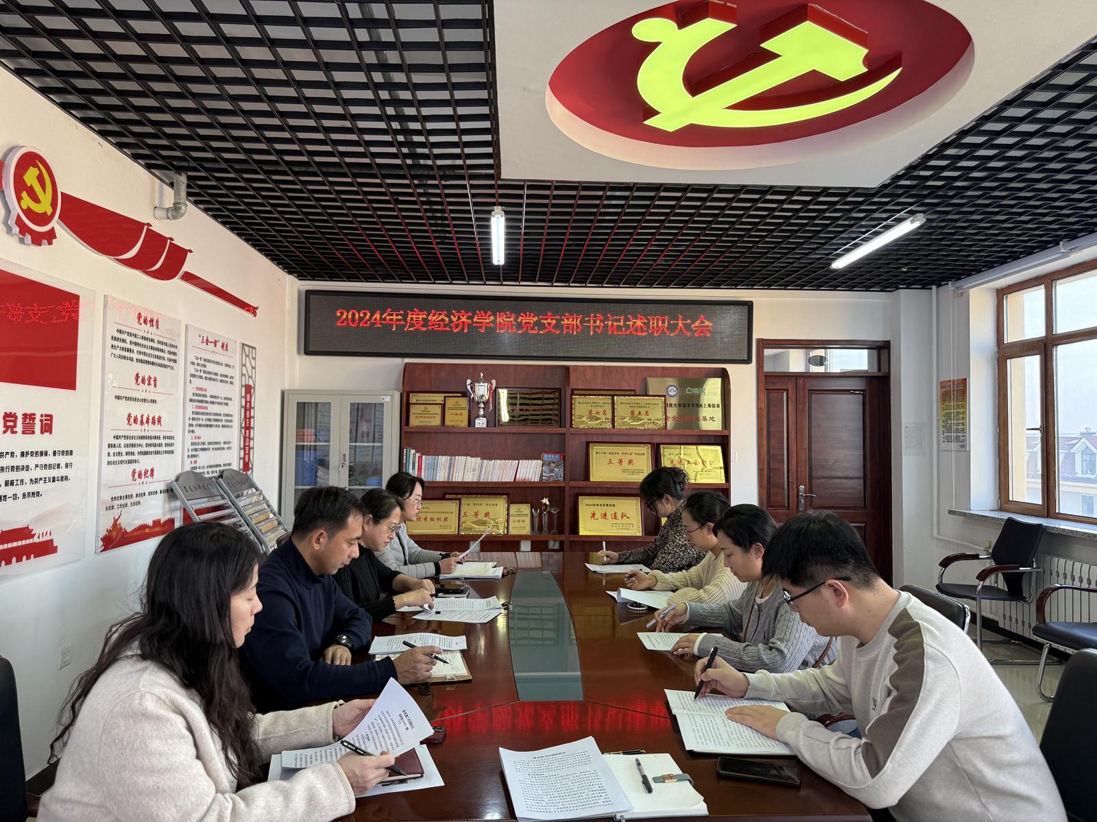 11/ 2024-12经济学院召开2024年度党支部书记抓基层党建工作述职评议会为深入贯彻落实党的二十届三中全会精神,充分发挥党支部的战斗堡垒作用和党员的先锋模范作用,提升党支部书记综合素质和履职能力,强化党支部政治功能,根据学校《关于做好2024年度党组织书记抓基层党建工作述职评议考核的通知》要求,12月9日下午,经济学院党委在朝阳楼0502召开“2024年度经济学院党支部书记抓基层党建工作述职评议会”。会议由学院党委书记雷金屹主持,学院党委委员和全体党支部书记参加会议。会上,学院8位党支部书记分别围绕理论学习、党纪学习教育、党支部建设、履行全面从严治党...