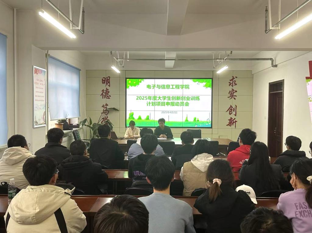 03/ 2025-04电子与信息工程学院召开2025年大学生创新创业训练计划项目申报动员会为进一步深化创新创业教育改革,激发学生创新潜能,培养实践能力,促进学院优良学风养成。电子与信息工程学院于4月2日在朝阳楼809会议室召开了2025年大学生创新创业训练计划项目申报动员会,电子与信息工程学院副院长冯福生、大学生科技协会指导教师孙曼参加会议,各协会负责人及各班级科创委员全员参会。会上,孙曼详细解读了本年度大学生创新创业训练计划项目的申报流程和注意事项。她以历届优秀的校级和省级大创项目申报书为例,详细解释了项目申报的条件、材料准备、项目选题、时间安排等方面的内容,并鼓...