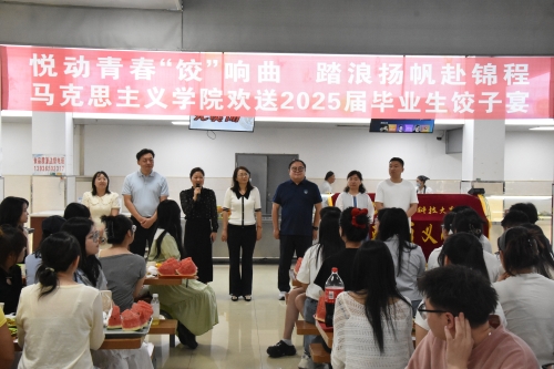 23/ 2025-06马克思主义学院举办“悦动青春‘饺’响曲 踏浪扬帆赴锦程”欢送2025届毕业生饺子宴仲夏骊歌起,饺香话离别。为做好2025届毕业生离校工作,营造温馨和谐的毕业氛围,6月18日,马克思主义学院在沁香园二楼举办“悦动青春‘饺’响曲 踏浪扬帆赴锦程”欢送2025届毕业生饺子宴活动。学院全体领导、专业教研室主任、辅导员和2025届毕业生参加了本次活动。活动由学院党委副书记李宁主持。活动中,学院党委书记张影代表学院为毕业生们送去了临行前的祝福与嘱托。她指出,毕业生即将踏上新的人生征程,希望大家在未来的工作和学习中坚守初心、勇担使命,在各自岗位上发光发热,以优异成绩回报母...