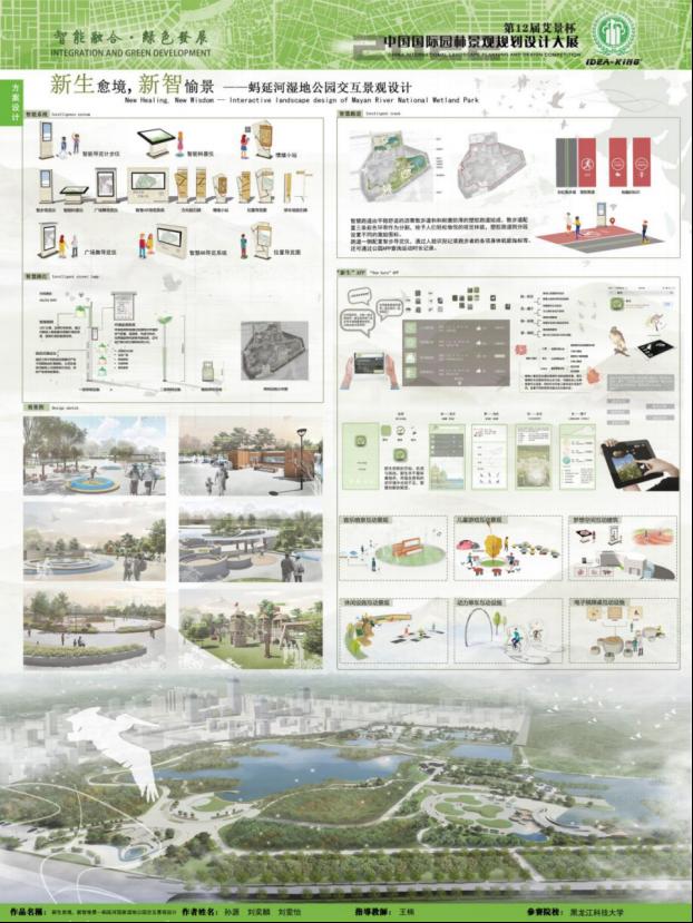近日,由中国长城绿化促进会主办、中国长城绿化促进会生态人居与绿色建筑分会承办的“智能融合·绿色设计”IDEA-KING(艾景奖)2022中国国际园林景观规划设计大赛竞赛结果公布。米兰(中国)一站式服务平台建筑工程学院风景园林专业教师王楠指导学生孙源、刘奕麟、刘雯怡完成的作品“新生愈境,新智愉景—蚂延河国家湿地公园交互景观设计”喜获铜奖。