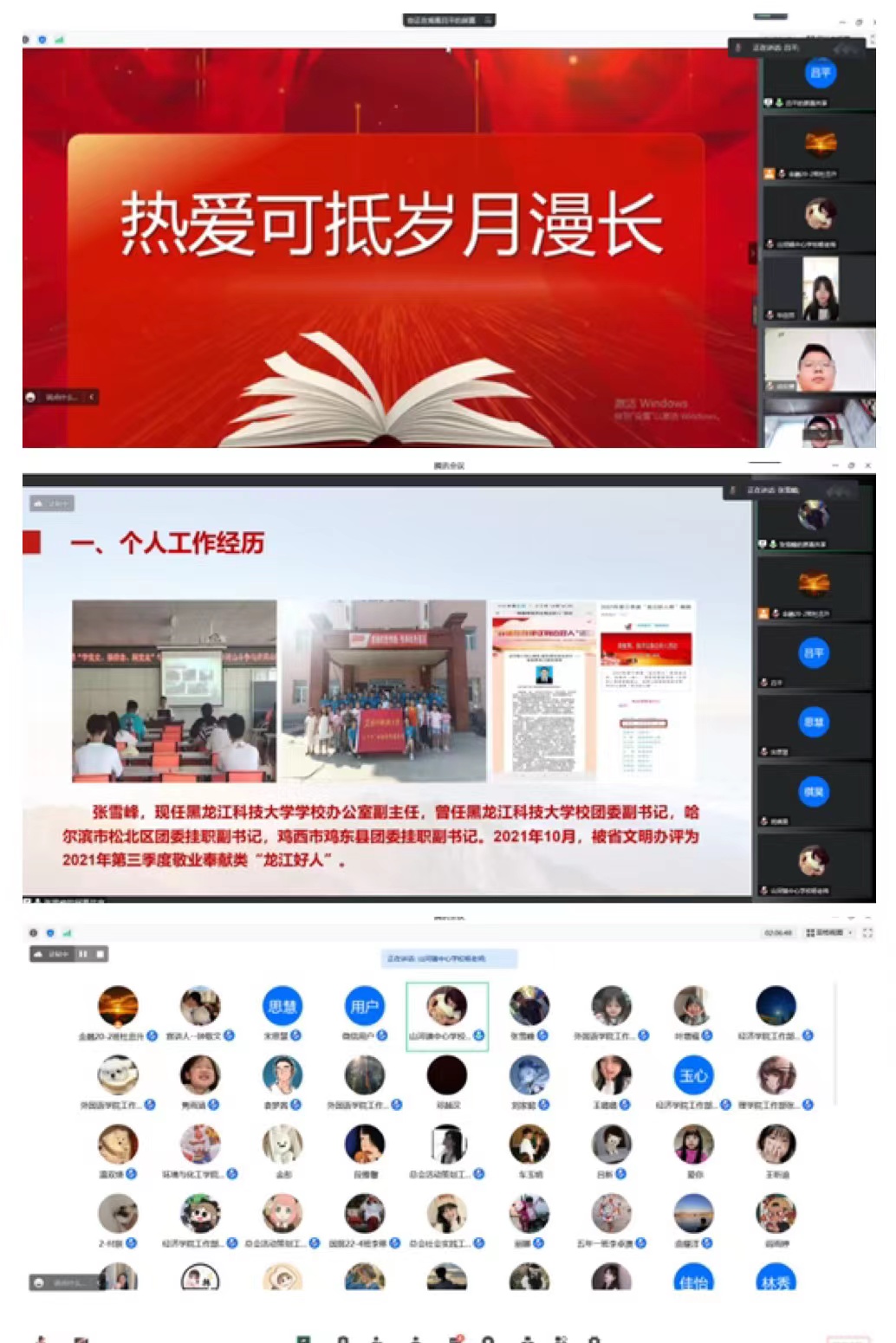 11月30日,校长孟上九以“学习党的二十大 做新时代好青年”为题,开展了党的二十大精神专题宣讲,并与新一届团学组织骨干集体谈话;校团委组建了由专职团干部、青年教师、道德模范、青年典型组成的青年宣讲团,成员在校内累计完成宣讲20余场,覆盖5000余人,主动与联系单位山河镇中心小学和鸡东县富国村开展“德礼满龙江、永远跟党走”学习二十大系列微宣讲活动,传播党的声音;校团委在第二十一期业余团校和第十四期“青马工程”骨干培训班课程设计中专门增设了党的二十大精神版块,邀请校内外专家进行了授课,有力强化了团学组织骨干的理论武装;各级团学组织依托“宣贯二十大 青马学员说”主题活动,组织青马工程学员深入团支部开展宣讲,充分利用网络新媒体,微团课等形式,让党的声音直达青年。