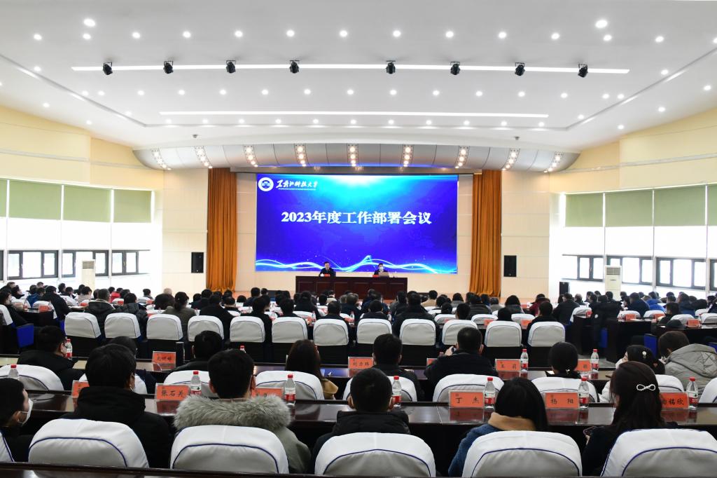 孟上九回顾总结了2022年度主要工作并对本年度学校重点工作进行了安排部署。一是以科学谋篇布局为统领,让学校内部治理更具效能。扎实推进学校“十四五”规划实施;完善以章程为统领的制度体系;深化新时代教育评价改革。二是以建成省特色应用型本科示范高校为牵引,人才培养模式更具米兰官网平台特色。高质量建成省特色应用型本科示范高校;完善应用型人才培养模式,深化科教融合、学科融合、产教融合及专创融合。三是以成功获批博士学位授予单位为引领,让学校内涵建设更上水平。全力争取获批博士学位授予单位;推进特色学科建设;推进“新一轮本科教育教学审核评估”工作;推进专业内涵建设。四是以推进学生全面发展为重点,让人才培养更有质量。提升学生教育管理服务水平;提升研究生培养水平;提升招生就业工作水平;提升创新创业工作水平;提升开放办学水平。五是以提高科研水平和服务能力为抓手,在助力龙江振兴发展中更显担当。聚焦提升科研攻关能力;聚焦高层次科研平台建设;聚焦提高社会服务贡献度。六是以建设高水平师资队伍为引领,让人才队伍更具实力。加强引才聚才工作;加强人才培育工作;加强激励机制建设。七是以持续改善民生为导向,让师生更有幸福感。坚持“以人民为中心”的发展思想,通过加强财务与审计监督管理,加强国有资产管理,加强基础建设和后勤服务保障,加强民生改善工作,加强“平安校园”建设积极改善办学条件,持续办好民生实事,努力提升师生幸福感、获得感、安全感,着力打造和谐平安校园。