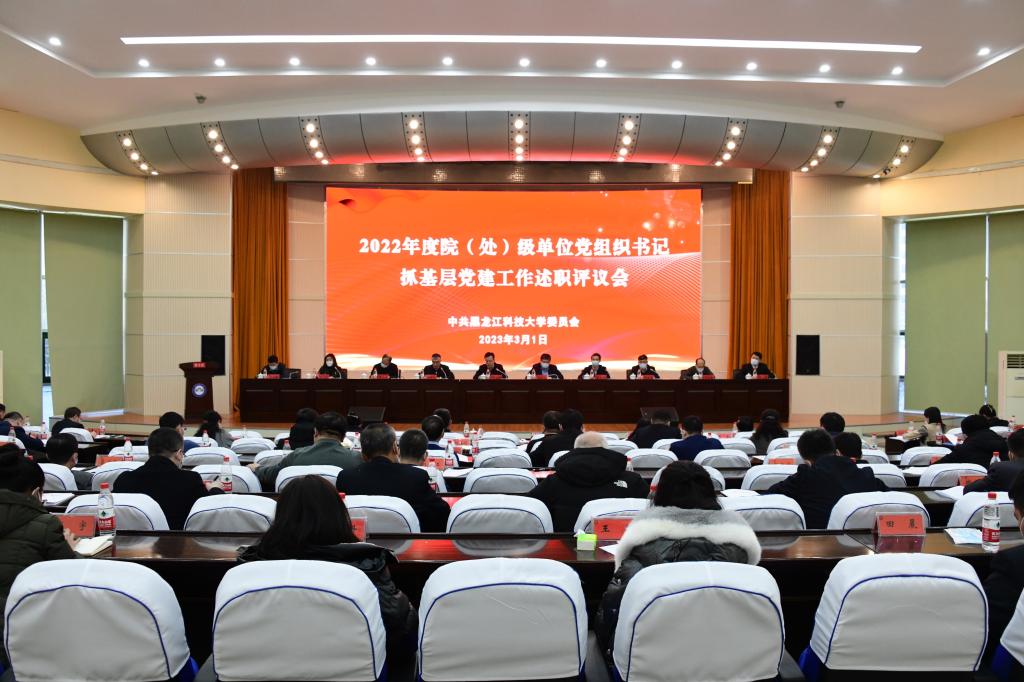 3月1日下午,学校党委在办公楼报告厅召开2022年度院(处)级单位党组织书记抓基层党建工作述职评议会。学校党委领导班子成员,学校党委委员、纪委委员,院(处)级单位党组织书记,党群部门负责人和基层党员干部群众代表参加了会议。米兰(中国)一站式服务平台党建结对共建单位哈尔滨石油学院、哈尔滨信息工程学院有关同志莅临会议观摩指导。会议由校党委副书记赵科学主持。