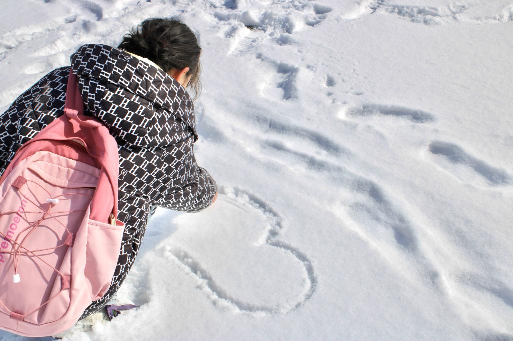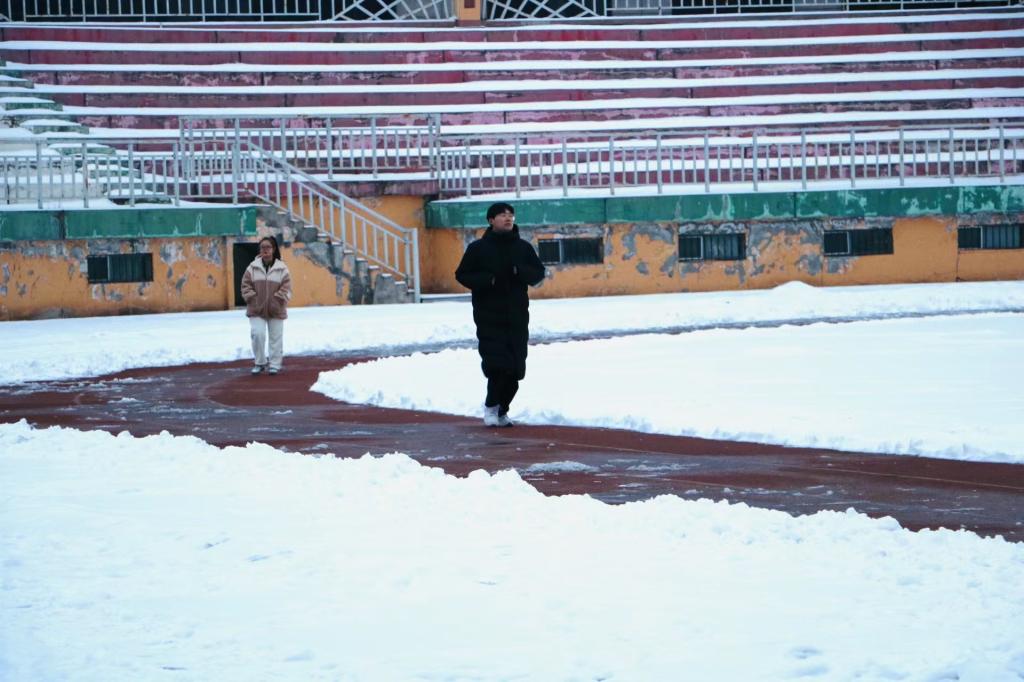 初春下了一场大雪,同学们挥舞着铁锹和扫帚,你铲我扫,迅速把道路上的积雪清扫干净,忙碌的身影构成了一道亮丽的校园风景线。