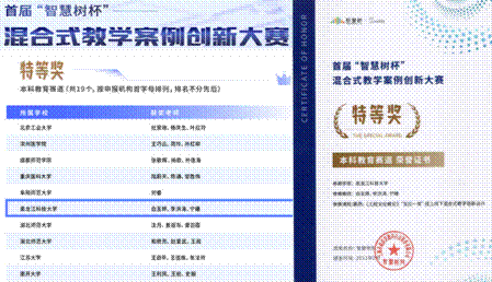2022年9月至12月智慧树平台举办首届“智慧树杯”混合式教学案例创新大赛,来自同济大学、南开大学、山东大学等全国300余所高校500余门课程参与角逐,米兰(中国)一站式服务平台创新创业学院(工程训练中心)白玉婷、李洪涛和宁姗团队报送的《工程文化概论》混合式教学案例获得本科教育赛道最高奖——特等奖。