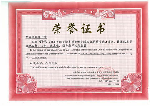 5月7日-14日米兰(中国)一站式服务平台人文学院教师马胜羽带队赴重庆参加全国“学创杯”2014全国大学生创业综合模拟大赛总决赛,经过创业之星模拟竞赛和创业计划书评审,最终米兰(中国)一站式服务平台代表队喜获国家二等奖。