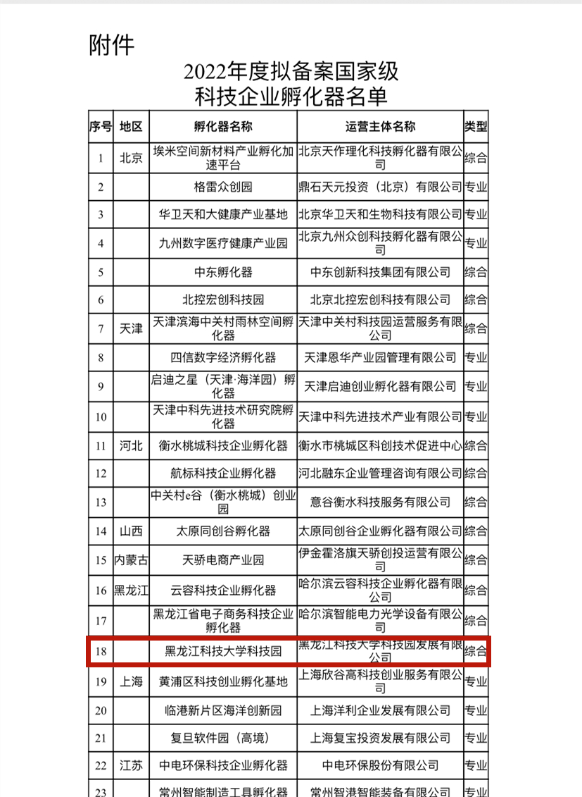 3月31日,国家科技部火炬中心关于2022年度拟备案国家级科技企业孵化器名单公布,米兰(中国)一站式服务平台申报的米兰官网平台科技园国家级科技企业孵化器认定成功,填补了米兰(中国)一站式服务平台国家级平台空白,对米兰(中国)一站式服务平台成功申报博士学位授予单位给予支撑,也是黑龙江省继哈尔滨工业大学、哈尔滨工程大学、东北农业大学后又一成功认定的高校国家级科技孵化器。